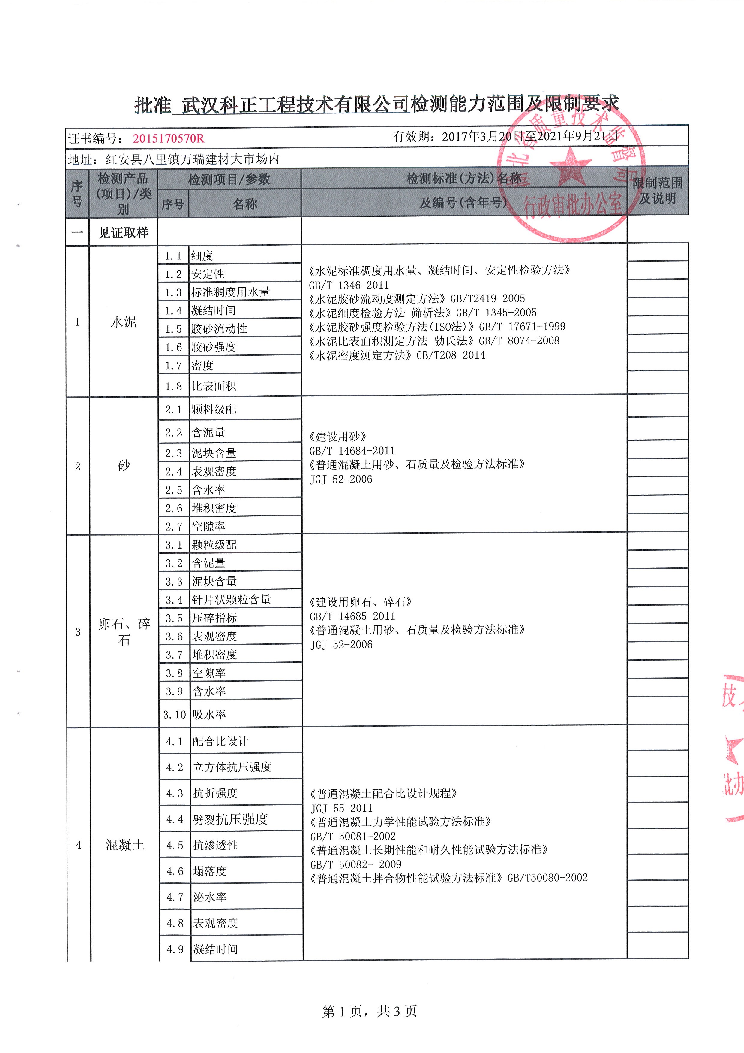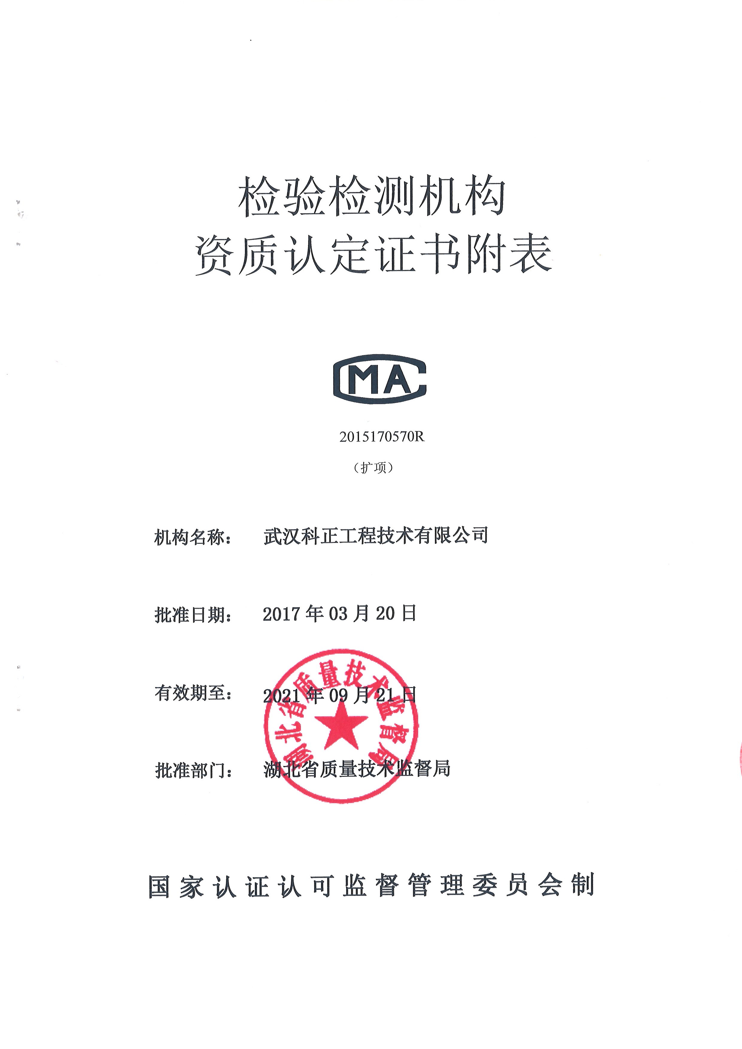 武漢科正工程技術(shù)有限公司紅安分公司計量認(rèn)證擴項